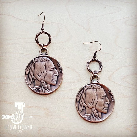 Copper Hoop Earrings in Natural Turquoise and Wood