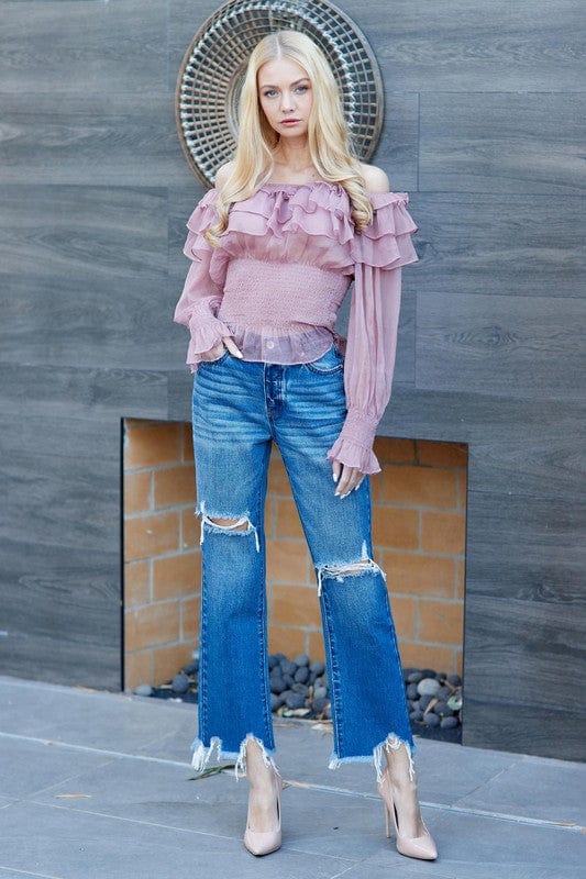 Elevate your denim game with our premium distressed Dad Jeans. The inner side button fly adds a touch of sophistication to this rugged style. Perfect for the modern lady who values both style and comfort. Complete your wardrobe with this exclusive piece.