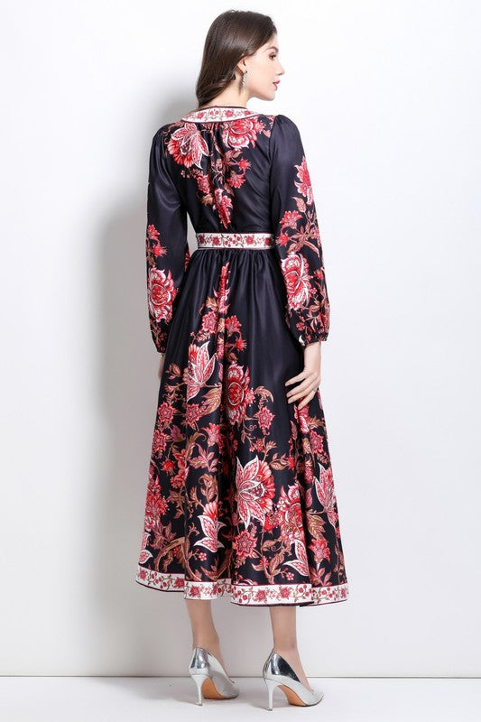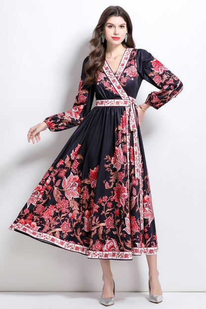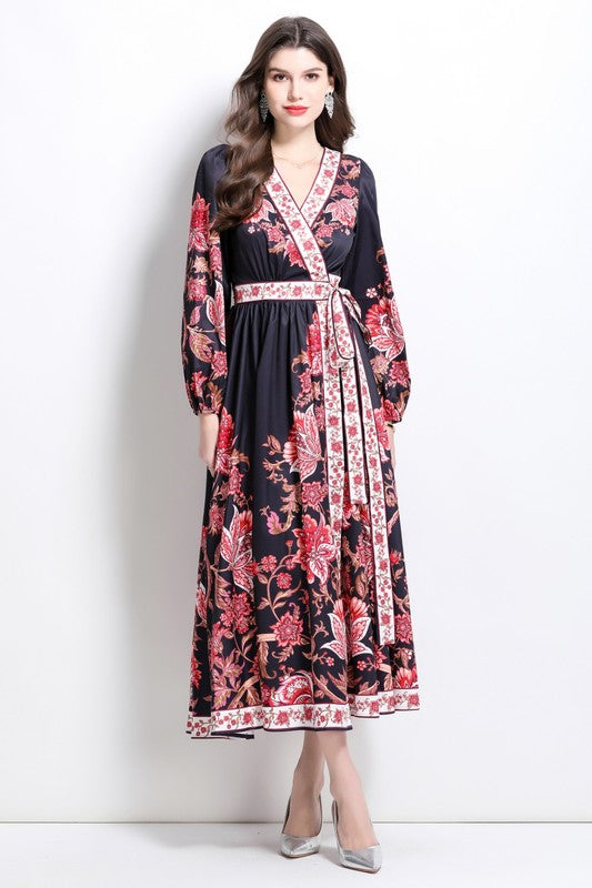 Elevate your evening look with this sultry maxi dress that's all about the details! The plunging v-neckline adds just the right amount of flirty charm, while the long sleeves keep things mysteriously elegant. The wrap-style belt cinches your waist for that perfect silhouette – because who doesn't love a dress that hugs in all the right places? Perfect for turning heads at your next night out!