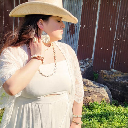 Elevate your style with our handcrafted Woven Aqua Terra Jasper Stacked Stone Bracelet. Made with stunning turquoise stones, this boho-inspired bracelet adds a touch of western flair to any outfit. Expertly woven for a unique and textured look, making it a must-have accessory.